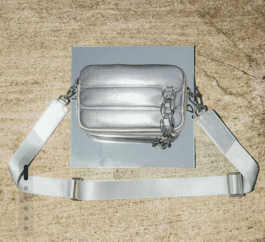 Crafted from a soft, puffy vegan leather, the Bubble Bag can be worn as a crossbody, on your shoulder or as a clutch. This piece features silver hardware, a silver chain and a magnetic pocket just for your phone (sized for the largest iPhone).