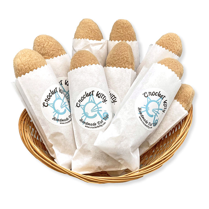 Each baguette comes wrapped up in a paper bag that your cat can tear into and enjoy before getting to the best part…the baguette!